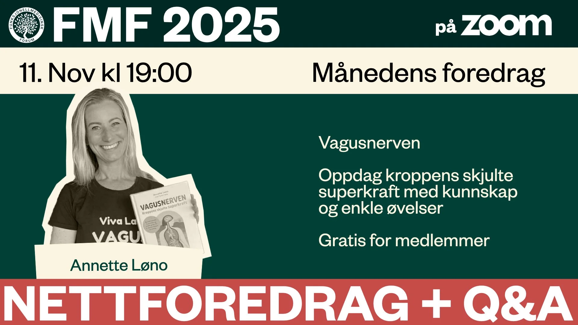Du får mulighet til å stille spørsmål til vår gjest, lege Tor Egil Skogli, og styret i FMF. Kveldens tema blir også å høre hvilke seminarer dere er interesserte i fremover. Vi ønsker å høre hvilke temaer dere har lyst til å fordype dere i. Arrangementet er gratis og er kun for medlemmer. Linken til møtet blir postet i medlemsforumet og tilsendt på epost til medlemmer. Velkommen!